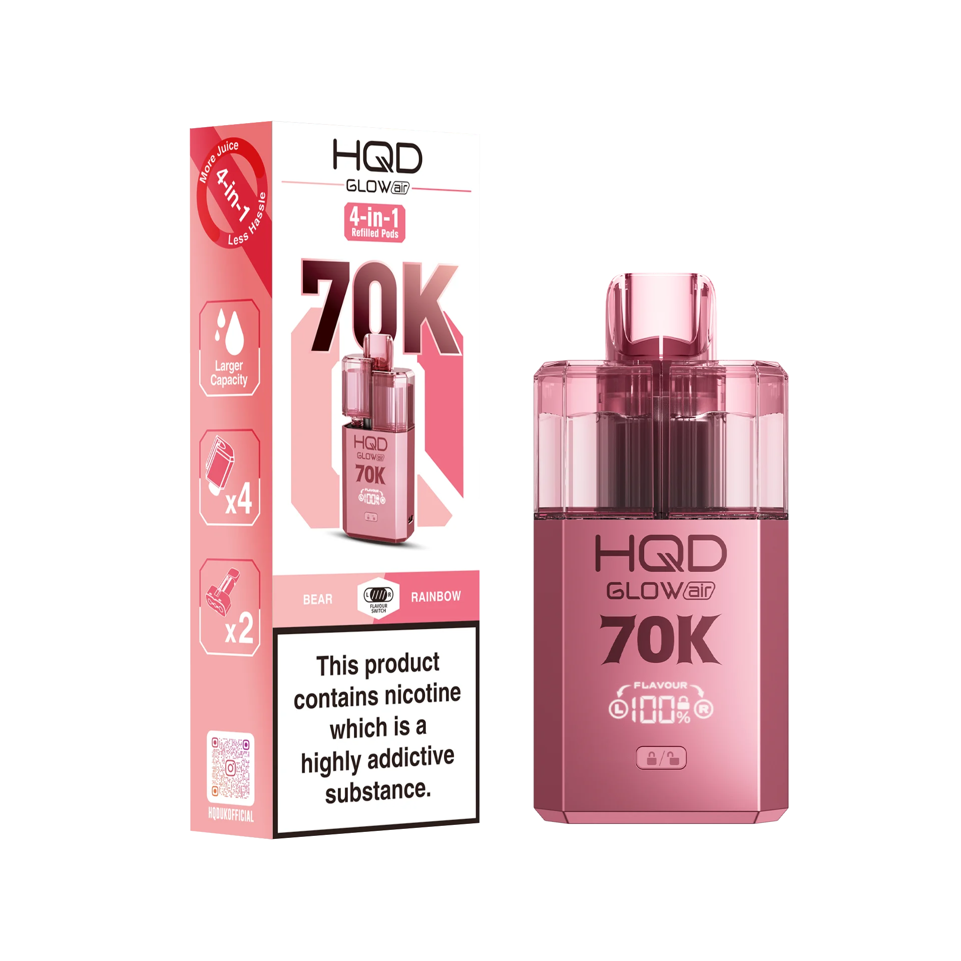 Experience the HQD Glow Air 70K – Kit – Bear & Rainbow, a rechargeable pre-filled vape delivering up to 70,000 puffs of smooth, rich flavour. Compact, consistent, and fully TPD compliant for the UK market.